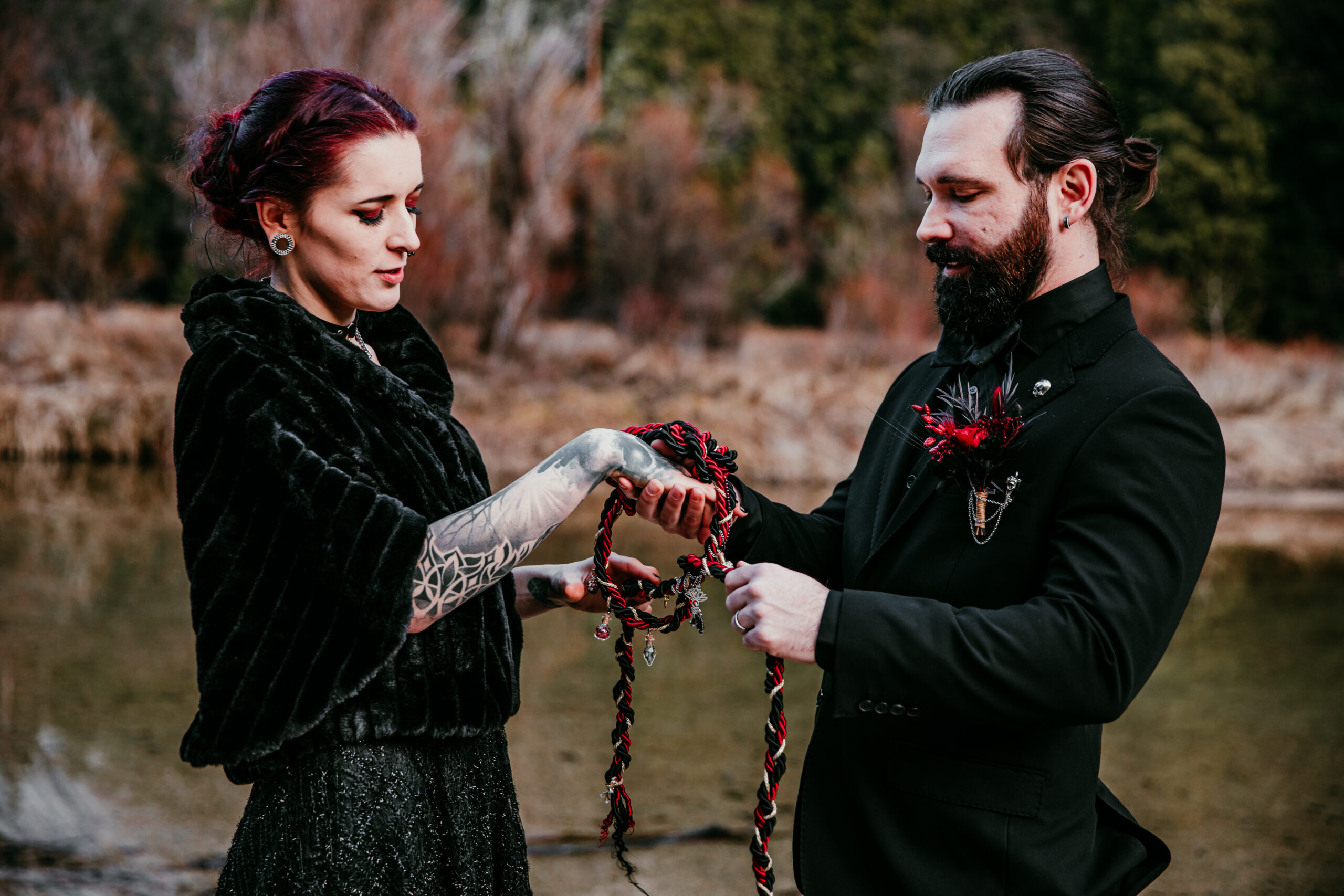 If you’re planning to include handfasting in your elopement, you don’t need anything overly formal. This can be as simple or as personalized as you want.